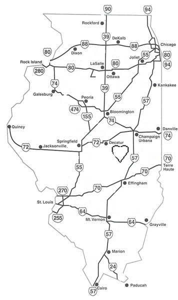 Arthur itself is about equal distance from Springfield Illinois, to the West and the Indiana state line to the East. Arthur is South of Champaign, Illinois, East of Decatur, Illinois, and North of Mattoon, Illinois.